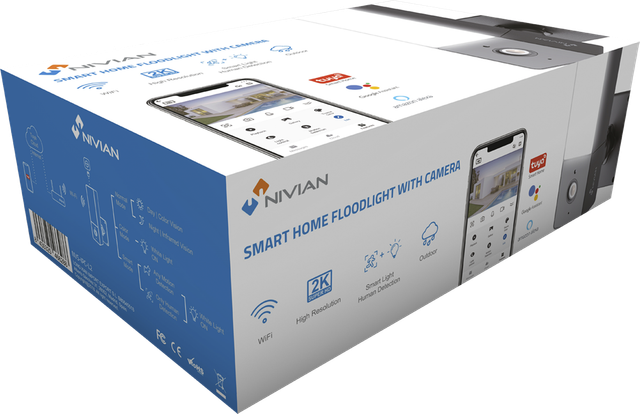 Nivian Smart Home Wi-Fi Floodlight Camera, 10m IR, colour at night with white smart spotlight